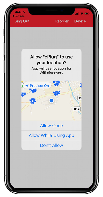 When the App show “Allow ePlug to your location ?”, Click “Allow While Using App”